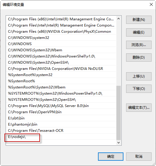 安装之后,检查一下系统环境变量,查看是否将node.js的安装目录添加到了path环境变量下了,如下图所示: