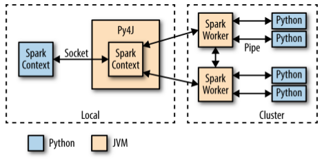 集群上的Spark Executor为每个core启动一个Python解释器,当它们需要执行用户代码时,通过管道与该解释器通信,发送用户代码和要处理的数据。