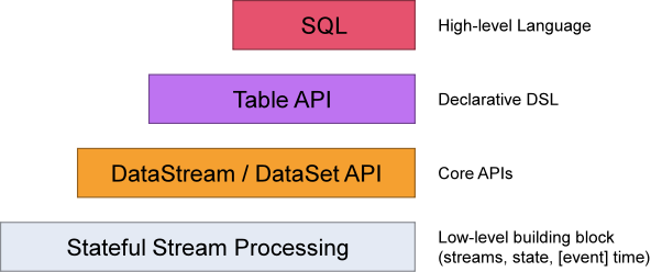 Flink提供了开发流/批处理应用程序的不同抽象层次。如下图所示: