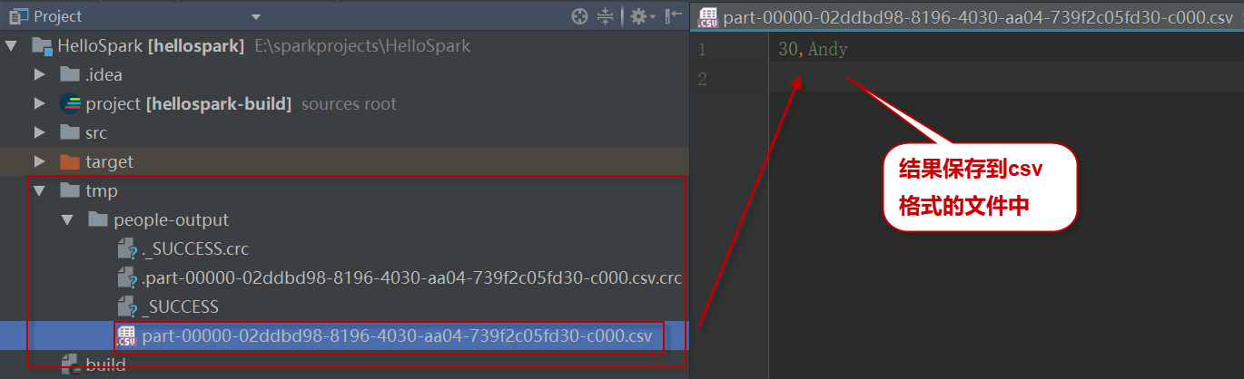 在本例中,我们使用了本地文件系统。大家可自行修改代码,使用HDFS文件系统。