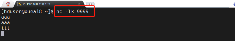 1)在控制台执行命令nc -lk 9999,这样就可以从控制台向9999端口发送字符串了;