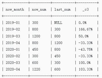 lag( t1.now_num, 1 ) over (order by t1.now_month ) as last_num