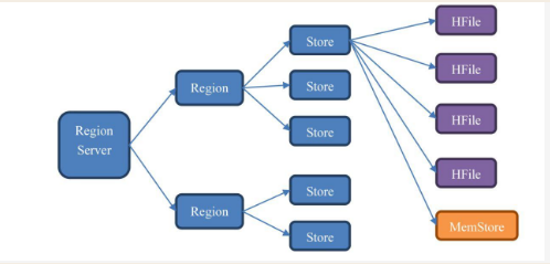 Region由一个或者多个Store组成,每个Store保存一个columns family。每个Store又由一个memStore和0至多个StoreFile组成。