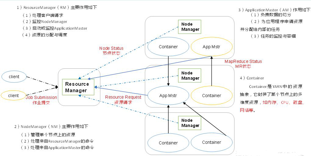 - 步骤3:ApplicationMaster首先向ResourceManager注册,这样用户可以直接通过ResourceManager查看应用程序的运行状态,然后它将为各个任务申请资源,并监控它的运行状态,直到运行结束,即重复步骤4~7。