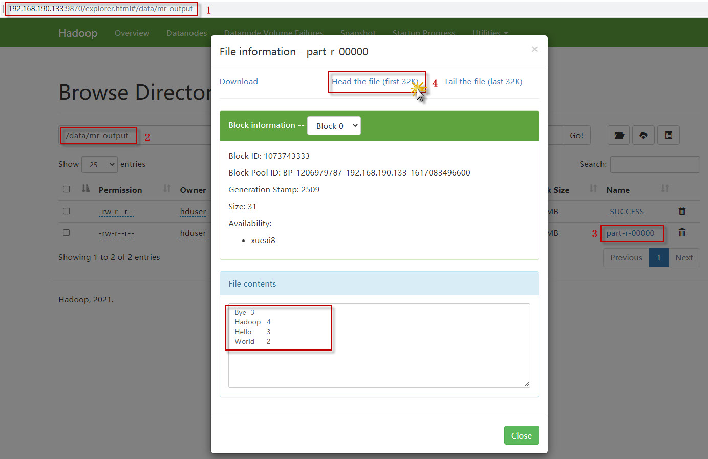 $ hdfs dfs -ls /data/mr-output