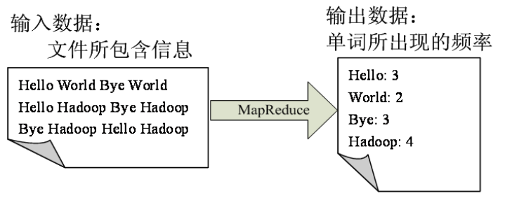 reduce函数接收所有的值-具有相同的key-作为输入,并输出该key以及该key出现的数量,作为输出输入数据为<单词, [1,1,1,1,1]>。