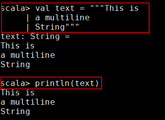在Scala中,可以通过三个双引号将文本包围起来创建创建多行字符串: