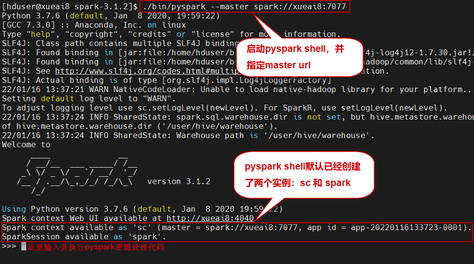 $ cd ~/bigdata/spark-3.1.2 $ ./bin/pyspark