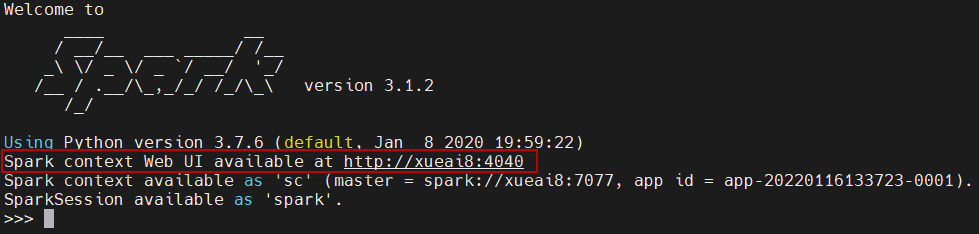 在启动一个pypark shell时,将看到与此类似的输出行(除非关闭了INFO log消息):