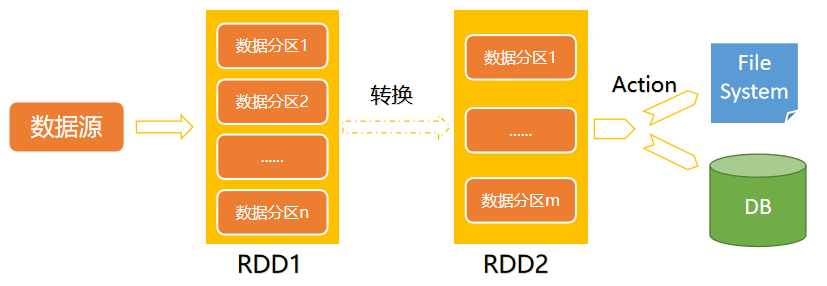 在Spark中,使用RDD对数据进行处理,通常遵循如下的模型: