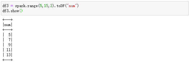 SparkSession有一个函数叫range,可以很容易地创建单列DataFrame,带有列名id和类型LongType。