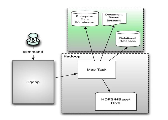 Sqoop 本身是通过 MapReduce 机制来保证传输数据,从而提供并发特性和容错机制。其系统架构图如下图所示: