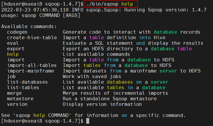 小白学苑的PBLP平台中已经安装好了Sqoop-1.4.7,可以直接使用。如果需要自己安装,请按以下步骤操作。