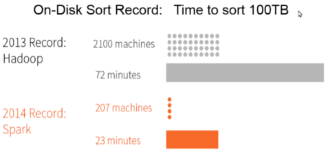 在2014年,Spark赢得了Daytona GraySort竞赛,该竞赛是对100 TB数据进行排序的行业基准(1万亿条记录)。来自Databricks的提交声称Spark能够以比之前的Hadoop MapReduce所创造的世界记录的速度快三倍的速度对100 TB的数据进行排序,并且使用的资源减少了10倍。