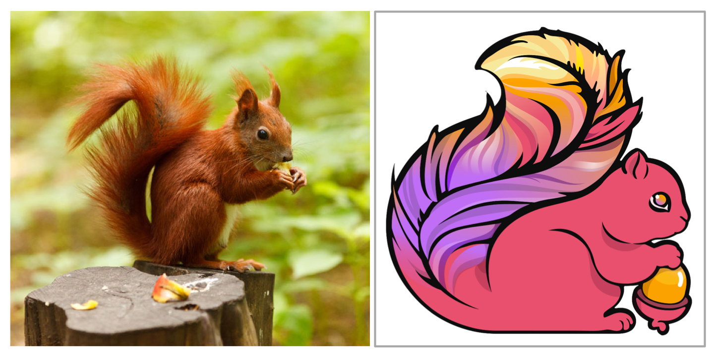 注2:在德语中,“Flink”一词的意思是快速或敏捷,它代表该项目所具有的流和批处理程序的风格。因为松鼠速度快、敏捷,所以Flink选择柏林郊外的一种红棕色松鼠作为Logo。在下图中,左图为柏林郊外的红松鼠,右图为Flink的Logo。