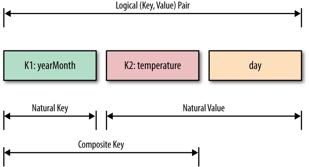 使用Value-to-Key转换设计模式:形成一个复合中间键-(K,V1)。 其中v1是次关键字。这里K被称为自然键。 要将一个value(例如,V1)注入到一个reducer key内,简单地创建一个复合键即可。 也就是说,将原始数据的key值和其对应的数据组合成一个新的key值,然后新的key值对应的value还是原始数据中的value。 那么我们只需要对组合键(新key值)进行排序就OK了。