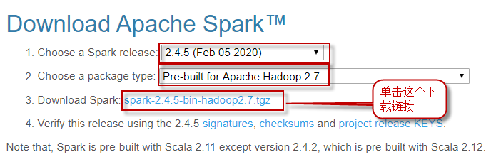 1)下载预先打包的二进制文件到"~/software"目录下,它包含运行Spark所需的JAR文件。下载