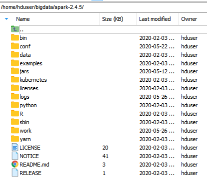 $ mv spark-2.4.5-bin-hadoop2.7 spark-2.4.5