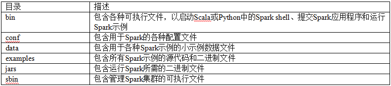 查看解压缩后的Spark安装目录,会发现其中包含多个目录: