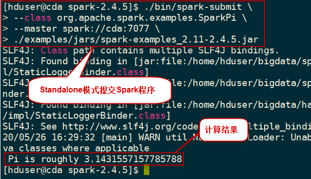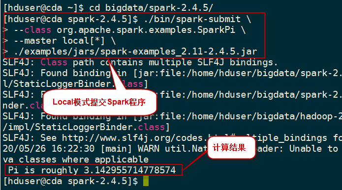 通过运行Spark自带的示例,验证Spark是否安装成功。