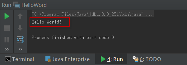 6)如果一切正确,该IDE应该在下方的控制台窗口输出“HelloWorld!”。如下图所示: