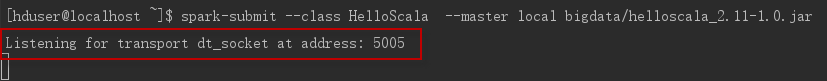 $ spark-submit --class HelloWord --master local[*] --driver-java-options bigdata/hellospark_2.11-1.0.jar