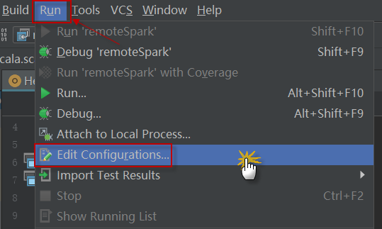 3)在IntelliJ IDEA中配置remote debug:在IntelliJ中选择菜单项【Run】|【Edit Configurations】,编辑运行配置信息。如下: