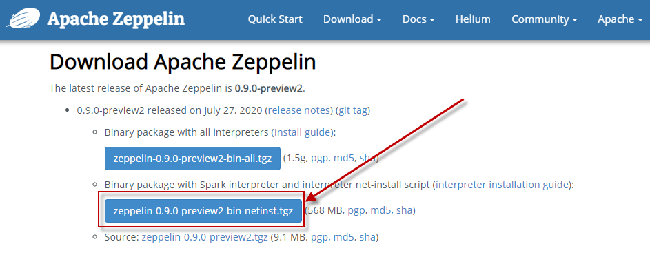 $ cd ~/bigdata $ tar xvf ~/software/zeppelin-0.8.0-bin-all.tgz $ mv zeppelin-0.8.0-bin-all zeppelin-0.8.0