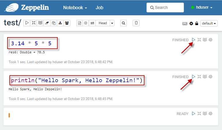 在新打开的notebook界面,执行Spark代码,如下图所示: