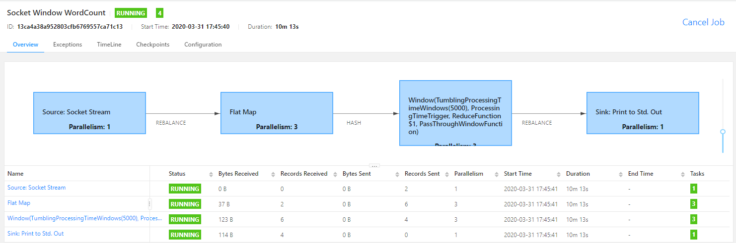 $ cd ~/bigdata/flink-1.10.0 $ tail -f log/flink-*-taskexecutor-*.out