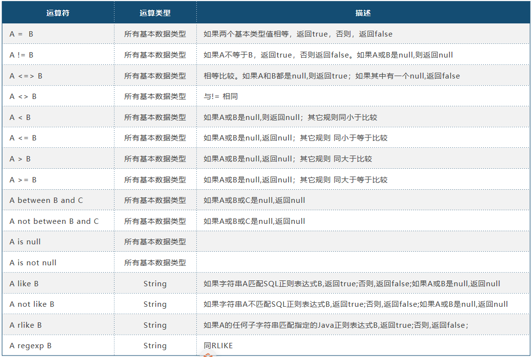 Hive支持各种内置的运算符。在Hive中有四种类型的运算符: