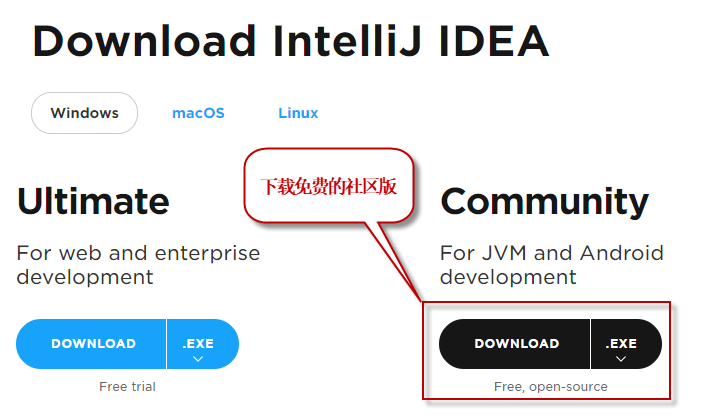 下载地址:https://www.jetbrains.com/idea/download/#section=windows